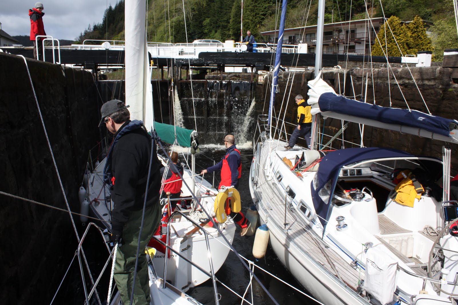 Resten av oppgavene fordelt slik at Hasse og Terje stor sett var i land mens Ivar og Nils kontrollerte tauene ombord. Det var nok Hasse og Terje som fikk den værste jobben. De måtte åpne og lukke sluser, og der det var flere sluser etter hverandre, måtte de løpe til nest for å få klargjort den til vi kom med båten.